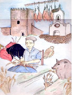 De agricultura pobre, as sua gentes, até há alguns anos, viviam práticamente desta actividade, onde a importância incontestada é representada pela azeitona, bem como da criação de gado (bovinos e suínos). A especificidade do clima aliada à abundância de bolota permitem a confecção da carne de porco com técnicas diferentes das do resto do país o que lhe grangeou a classificação de região demarcada do presunto "pata negra" tão apreciado pelo seu sabor único.